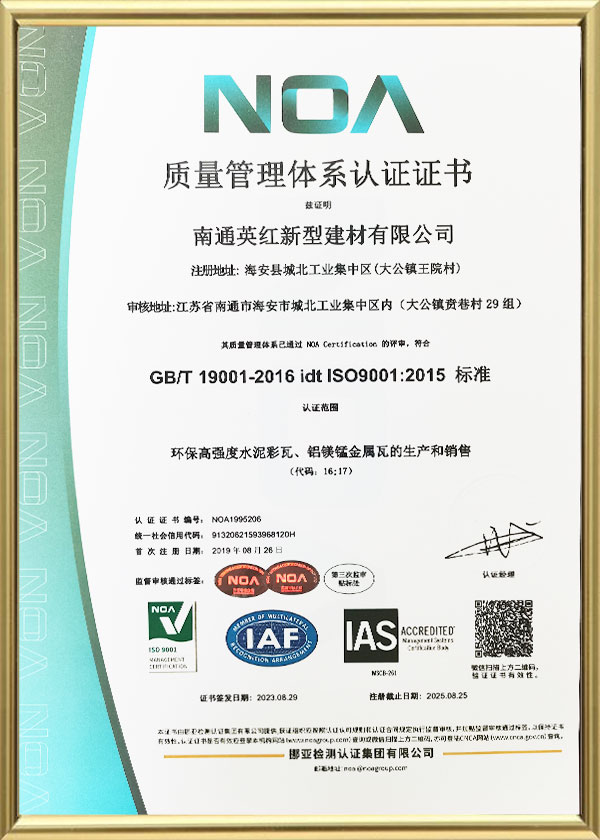 Meiningjia Roofing System Nantong Co., Ltd. est une entreprise de premier plan spécialisée dans la recherche, le développement, la production et les ventes de matériaux de décoration de bâtiment de haute qualité. Situé à Nantong, province du Jiangsu, notre entreprise occupe plus de 20 000 mètres carrés et emploie plus de 130 professionnels qualifiés. Nous nous sommes établis comme une force principale sur le marché intérieur, en particulier réputé pour notre expertise dans les matériaux décoratifs en métal.